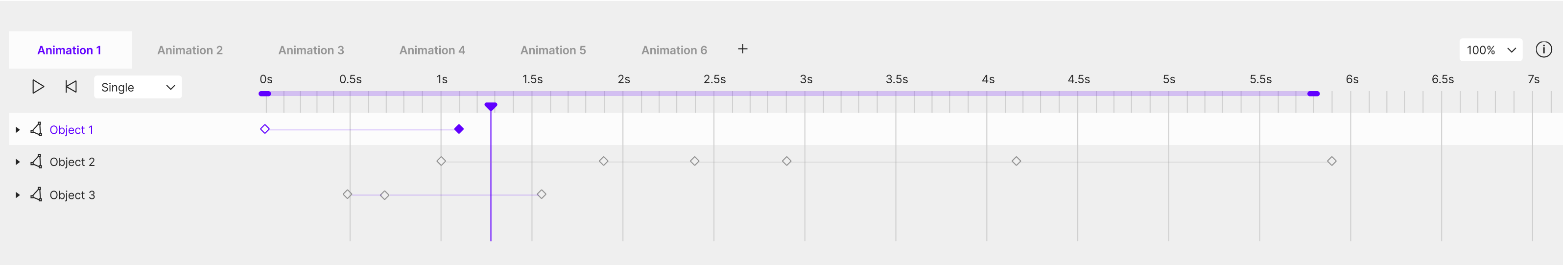 Skeletal animation can be imported in Vectary. Bones can be manipulated and modified, allowing for the creation of animations, interactions, and transformations.