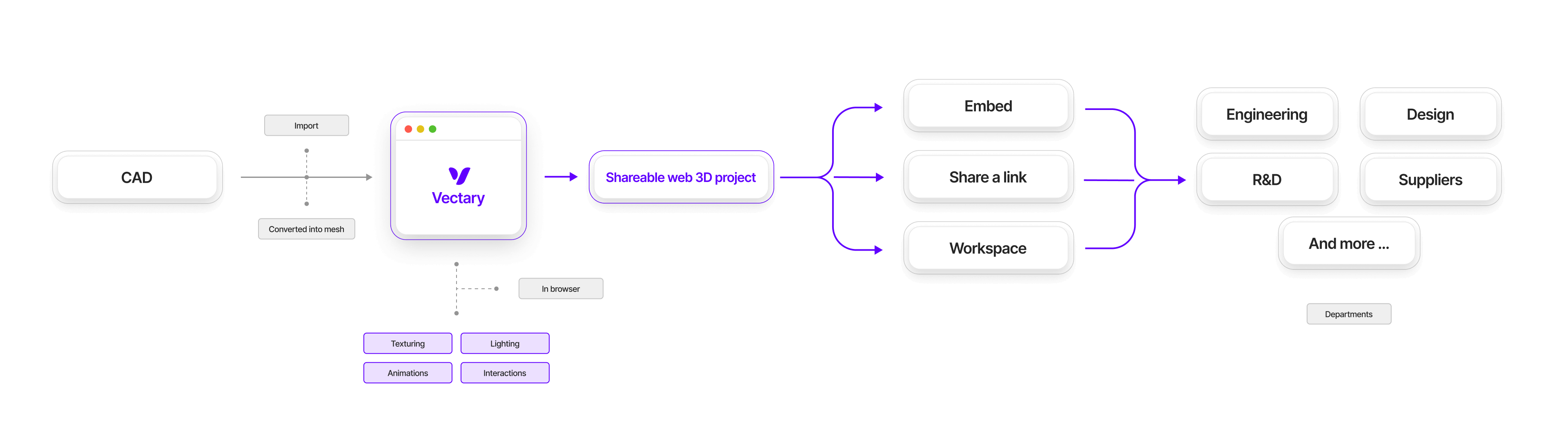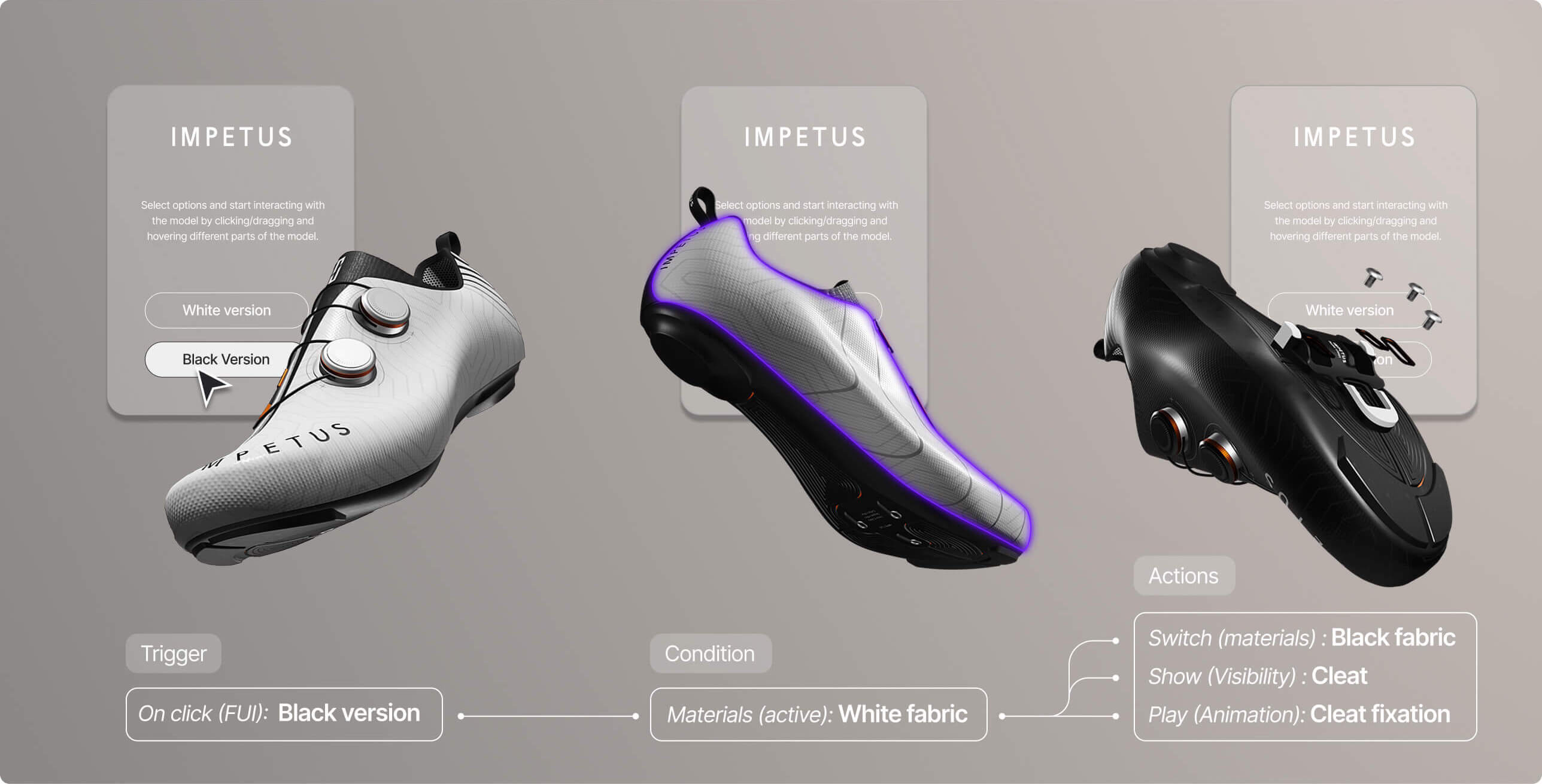 Create 3D configurators to upsell products, and interactive designs to communicate and explain product functionalities.