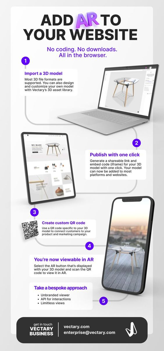 If you’ve taken a peek at our Vectary Business infographic, then you’re already familiar with how easy it can be to incorporate AR into your product communications. It’s also something that can keep your business, or clients, ahead of the curve and showcase your services, particularly if you’re focused on innovation.