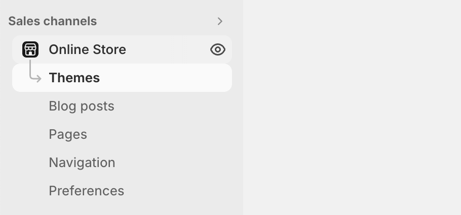 4. Open your admin panel in Shopify and click on the Themes in the Sales channels menu.