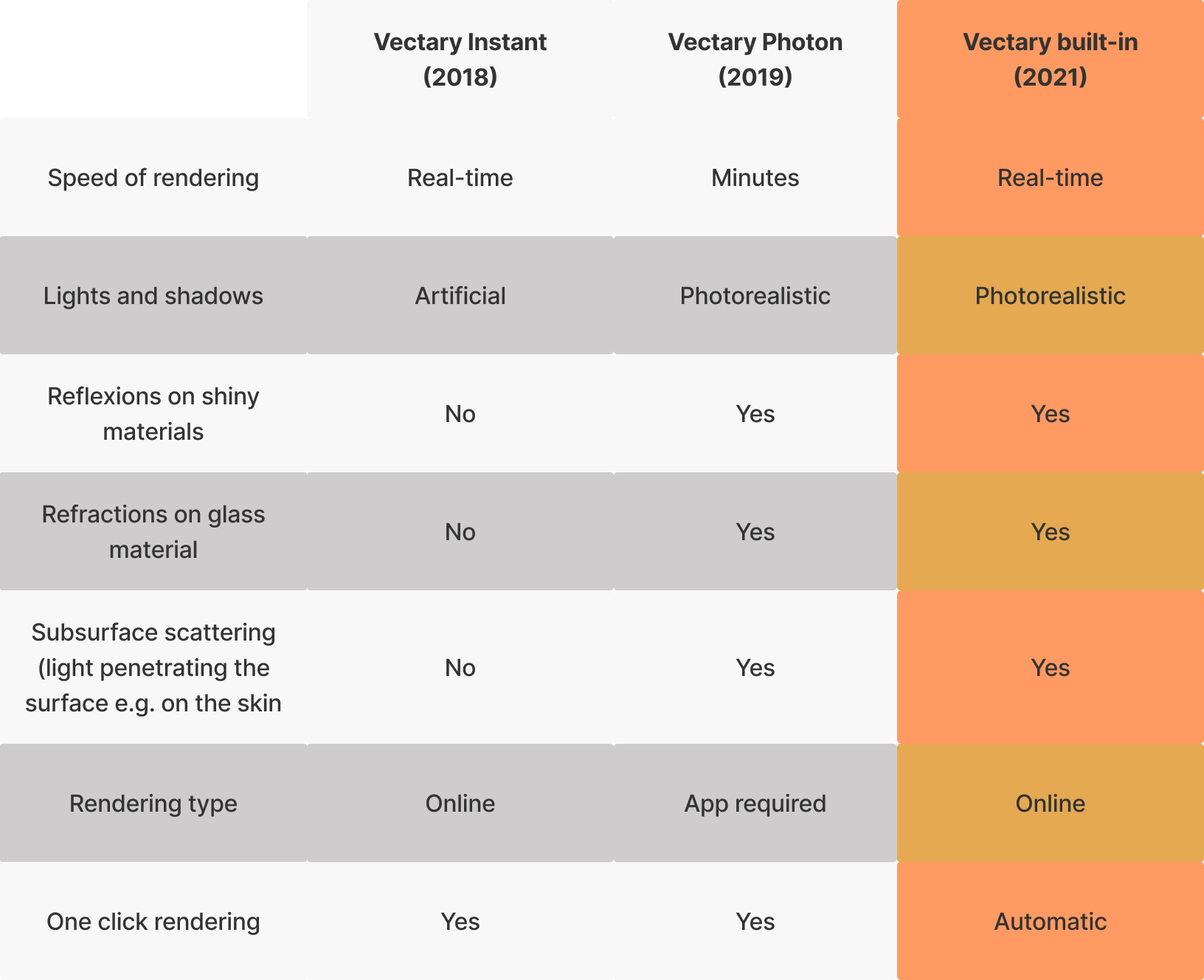 Comparison of Vectary renderers: