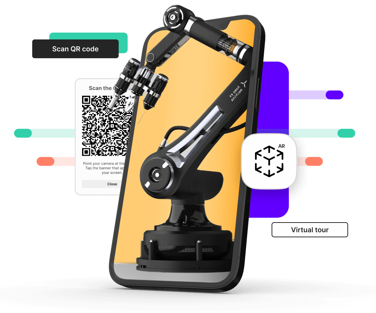Many conferences today are hybrid, consisting of an offline exhibition and an online keynote streamed to a larger audience that may not be able to attend in person. AR opens up numerous possibilities to enhance the experience for remote attendees. For instance, if you're launching a new product, share a digital twin of the product via a link. This can be done through official conference channels such as social media or newsletters or by targeting a specific conference hashtag. The user can open and view the product display at their location.