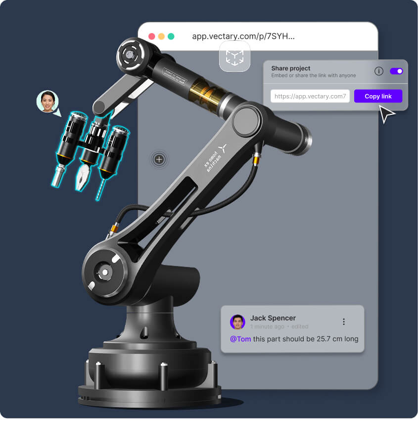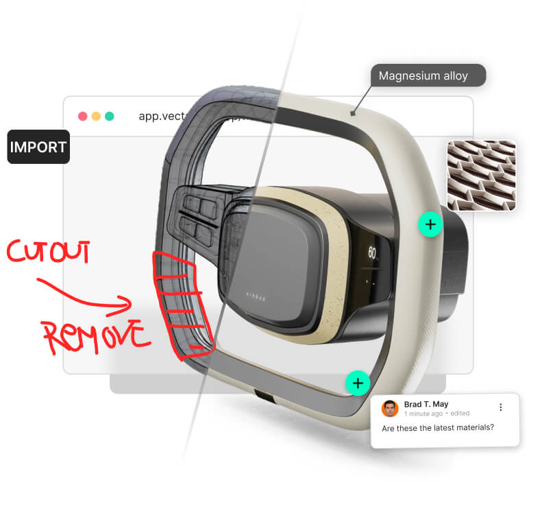Traditional 3D tools were built for solo work. Enterprise teams need collaboration for PMs reviewing, marketers embedding, engineers adjusting, often in the same day. Vectary platforms supports teams by allowing: