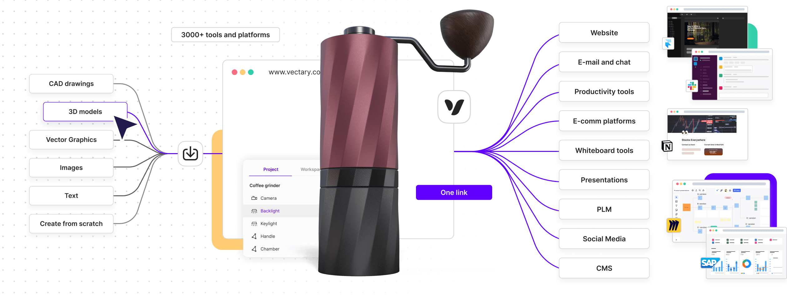 Maximize your team's productivity by using Vectary to store all your design files, no matter what software the designers are using.