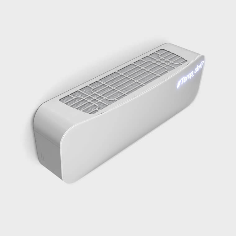 The whole scene is set to a neutral light grey/white color scheme. Indoor AC units usually blend in with the room and do not attract much attention, which is why we chose white color and metallic materials. A cool design feature of this particular AC is the front cover that conceals the internal components when the device is not working. On top of the cover, there is a thin piece of geometry with a glass material applied, giving it depth and nice reflections. Temperature and icons are placed underneath this glass panel. A lightmap was baked on the outer parts, while ambient occlusion (AO) was used for the internal ones. AO textures are smaller in size compared to lightmaps, making them ideal for areas where high detail is not needed.