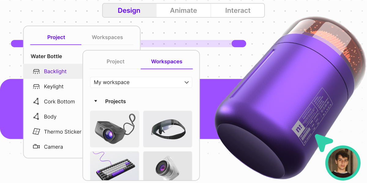 Group an entire scene setting into one switchable variant. Switch between objects, camera views, scenes or backdrops.